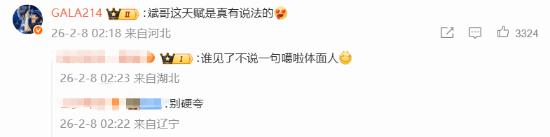 随后,他还在评论区补充表示:“我只是没怎么练而已 认真练肯定比gala强啊”。Gala本人也在评论区回复:“斌哥这天赋是真有说法的”。