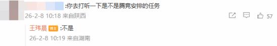 随后,有网友在评论区询问,是不是上层安排的任务,对此,王玮晨回应表示“不是”。