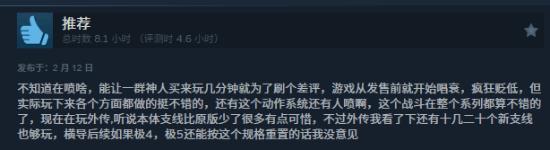 给出好评的玩家表示,游戏整体表现可圈可点,战斗系统亮点突出,爽快感与策略性兼具;此外,本作依然支持中文配音,降低了剧情理解门槛,也获得不少玩家点赞。