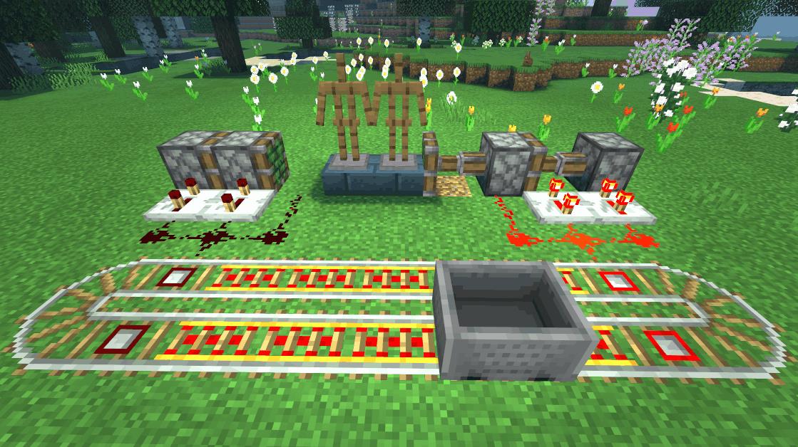 本期的核心原理非常简单,只需要一组无限循坏的铁轨,其中用到的探测铁轨会在矿车经过时发出红石信号,这样就可以不断地触发红石机关啦~