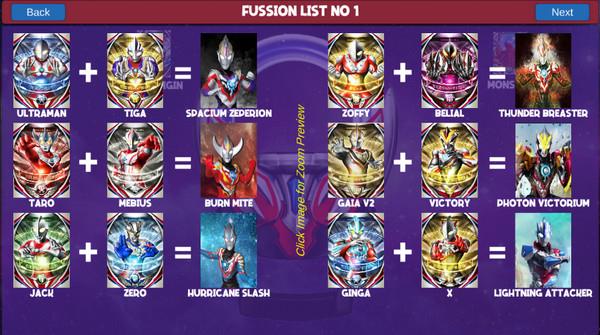 3、游戏中也收录了各种奥特曼卡,可以进行融合操作。