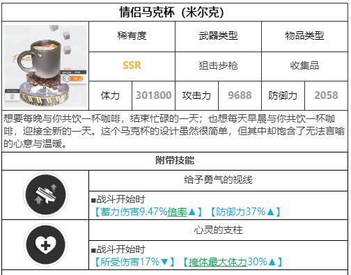 胜利女神:新的希望2026最新版说明-收集品/珍藏品图鉴1、情侣马克杯(米尔克)