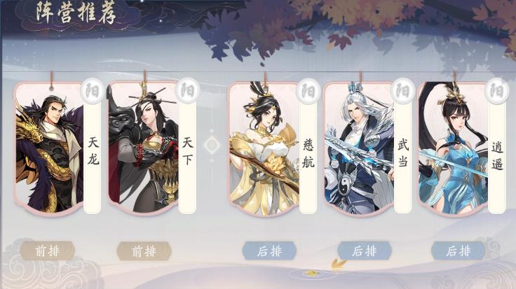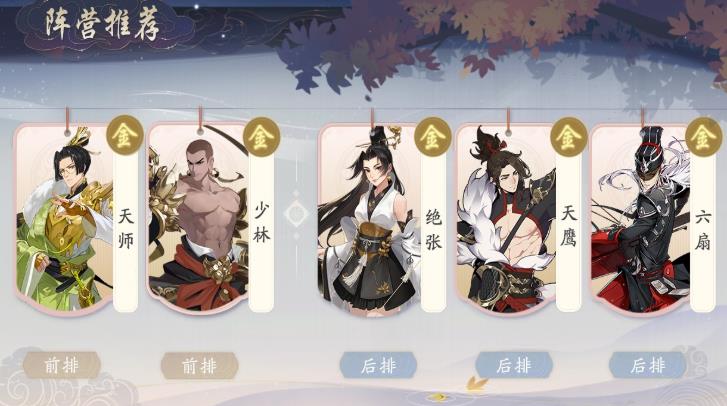 武林闲侠最强阵容推荐1、前期阵容推荐