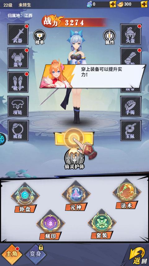 1、修炼维度丰富——主角通过元神修炼和境界突破提升战斗力,可以升级搭档,升星 (消耗搭档卡和星光)。
