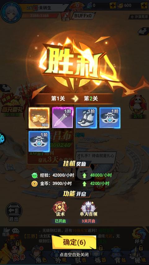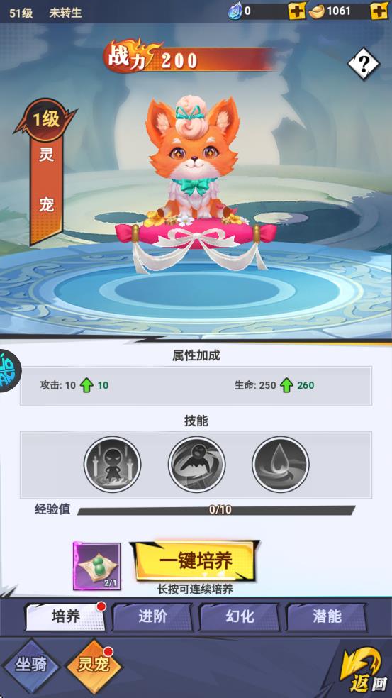 2、解锁生命角色,专精武功,使用经验丹升级坐骑/灵宠,激活专属技能和外貌。