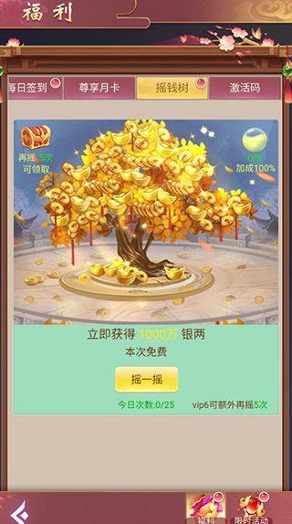 玩家点击左下方的月卡即可进入摇钱树界面,点击摇一摇就可以获得礼包。