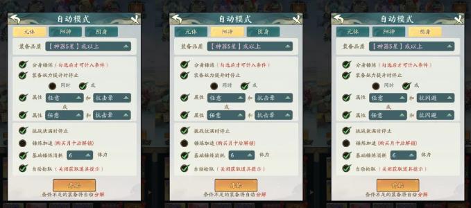 4、暴击流:打异兽入侵、妖邪或者镇魔的暴击流,当然九幽、遗迹只需要切换一下配置;