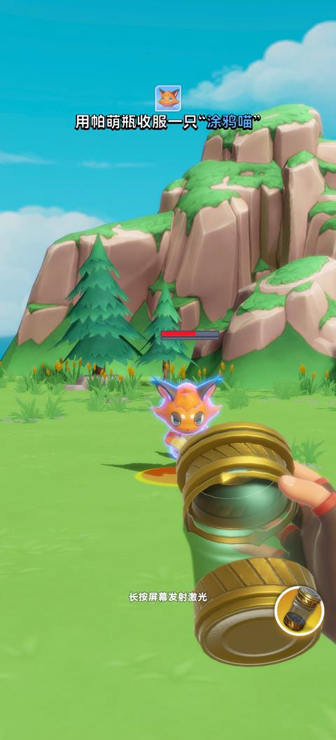3、接着玩家需使用捕捉瓶来攻击捕捉帕萌。