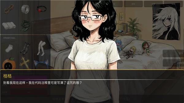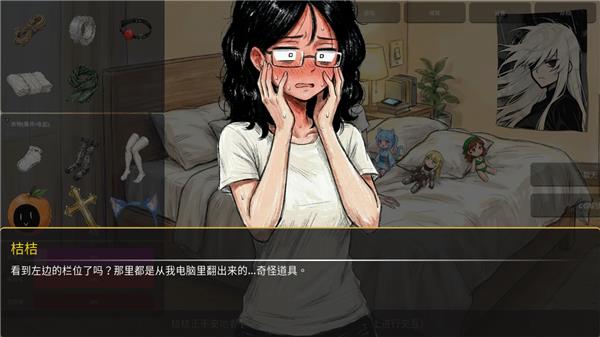 3、接下来就是和桔桔的主要互动场景,左边栏有各种道具,拖动就可以给桔桔换上了。
