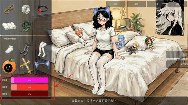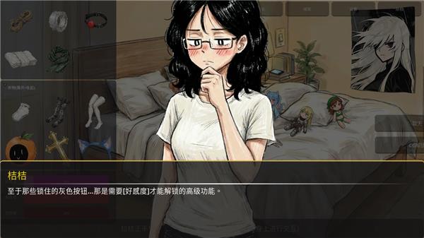 4、一些灰色的按钮是需要通过好感度来解锁的,好感度显示在左侧道具的下面。