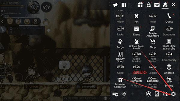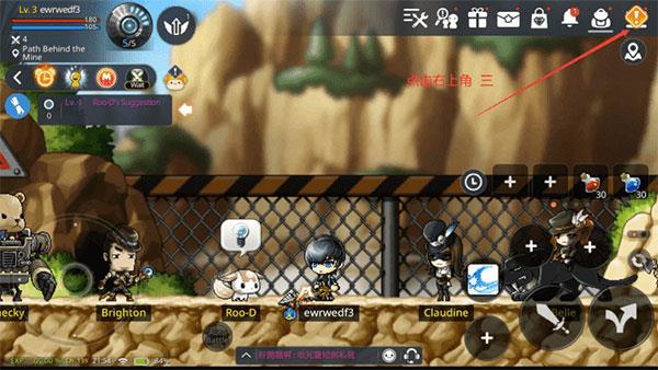 冒险岛M2026最新版攻略-切中文教程1、进入游戏,点击右上角 三 (感叹号覆盖的地方)