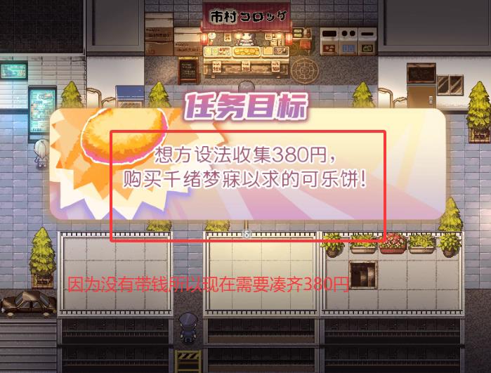2、根据指引去买东西吃,然后收集380円来购买可乐饼。