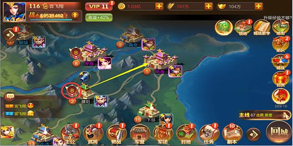 1、游戏中如果你的人手不够,或者你觉得自己的人手不够,那么你可以选择去招贤。