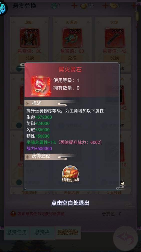 玩家可以在悬赏商城里使用悬赏值兑换心仪物品