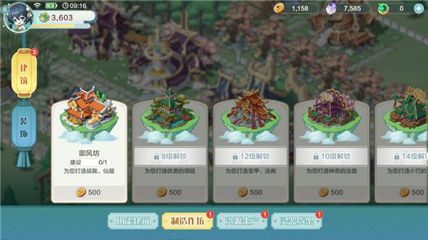 5、点击相应的建造可消耗资源进行升级,如有匠师可入驻提升收益。