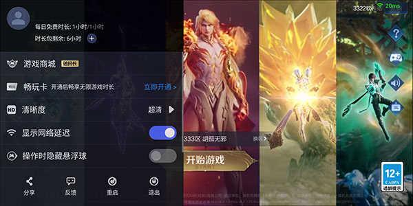 2、这里可以开通无限游戏时长,可以调云游戏的清晰度,还有关闭网络延迟等设置。