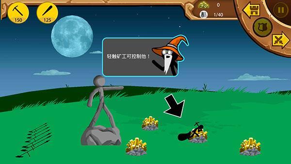 火柴人游戏新手玩法技巧分享1、遗产是一款比较经典的对战塔防游戏,首先第一件事就是获取资源,我们点击屏幕左上角的“锄头”按钮,可以召唤出挖矿的火柴人,它们拖着大包来挖矿,然后我们可以获得更多的矿石召唤战斗类的火柴人。