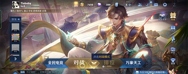 王者荣耀云游戏2026秒玩版攻略-怎么设置隐身状态1、大厅点击右上角的设置按钮,进入设置中心。