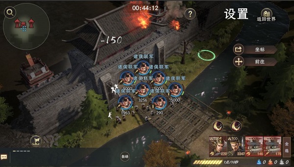 当同盟势力攻占城市后,诸位将军即可将营地迁移至右方城市中,享受城市的资源加成与同盟增益。