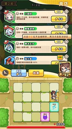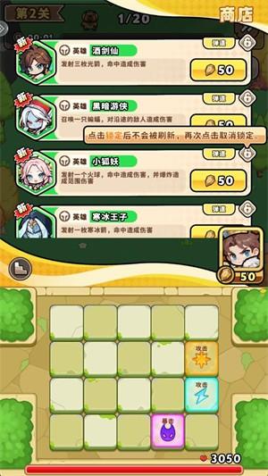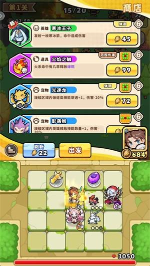 4、消灭怪物可以获得经验和宝石,提升等级后可以进入商店选择新的英雄、道具和宠物来增强自己。