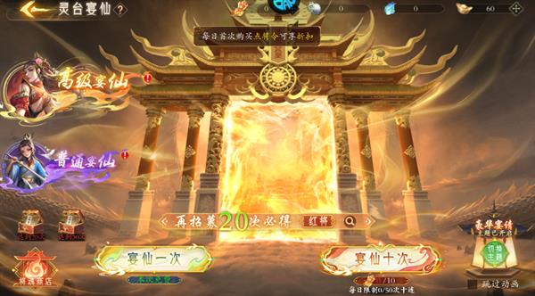 前期建议优先在【灵台宴仙】卡池进行招募,该卡池拥有“累计招募20次必得红将”的保底机制,能够快速获取高品质武将,帮助玩家尽早组建核心阵容。由于前期资源有限,建议集中培养1—2名核心武将,避免资源分散。