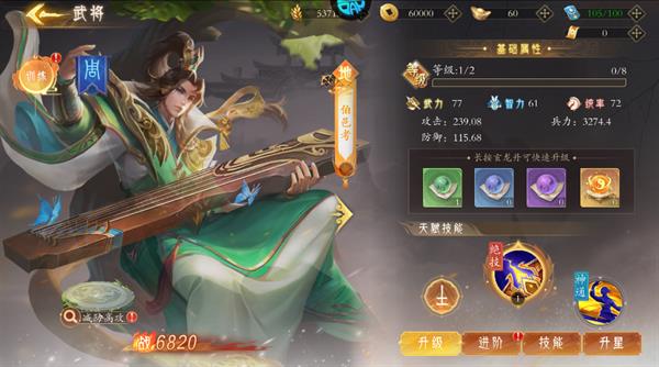 提升武将的阶数可以增加武将的基础属性,也能解锁新技能。