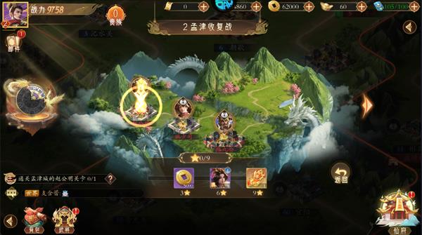 建议优先挑战【孟津收复战】等主线关卡。通关后可获得武将碎片、进阶材料等重要资源,同时还能逐步解锁更多系统玩法,是前期资源获取的核心途径。