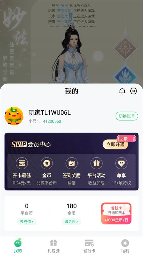 第四个: vipvip888: SVIP经验*40、周卡激活、仙玉1.68w、东皇太一、璀璨晶龙、风羽绫罗。