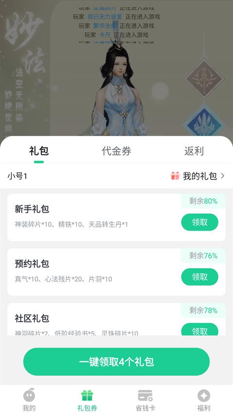 3、切换到礼包这里,我们选择一键领取礼包兑换码。