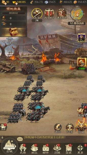 右下角:包含“武将”、“技能”、“士兵”等选项卡,用于管理和提升武将能力。