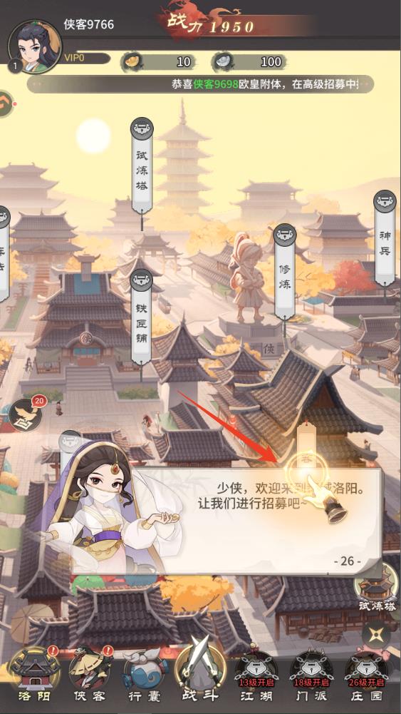 自由侠客录怎么玩1、玩家进入游戏后先抽卡。
