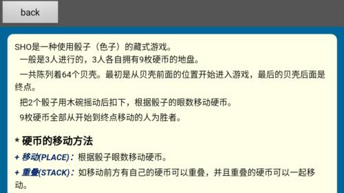 藏式骰子SHO游戏说明1、游戏以贝壳为流通货币,真实还原民间游戏风貌,带你领略历史场景的独特韵味。