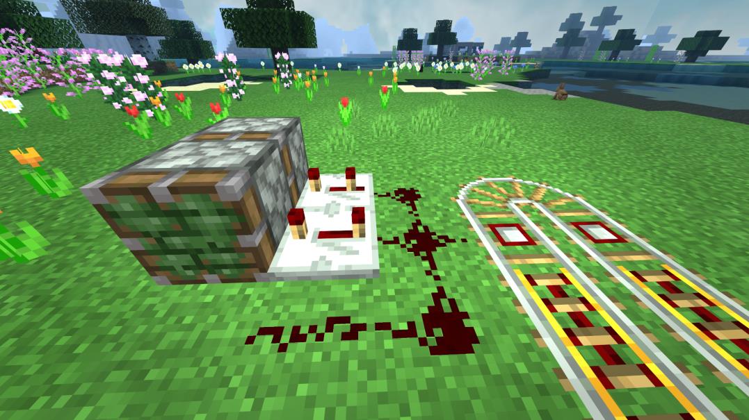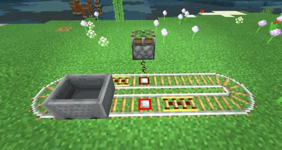 本期的核心原理非常简单,只需要一组无限循坏的铁轨,其中用到的探测铁轨会在矿车经过时发出红石信号,这样就可以不断地触发红石机关啦~
