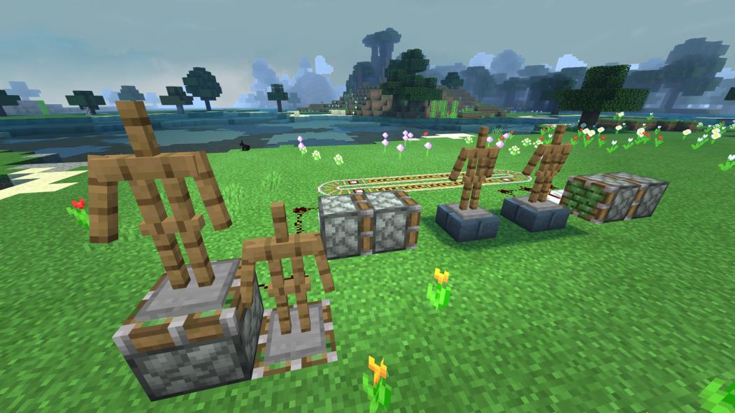 6、只需要延伸红石线路到活塞背后,并在活塞上放盔甲架就可以做到啦,除了横向移动的目标,还可以设置上下移动的目标哦~