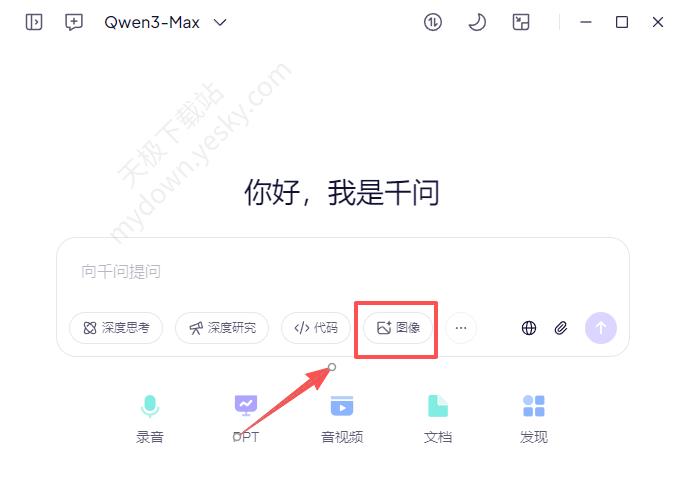 1、打开千问电脑版,选择对话框中的【图像】。