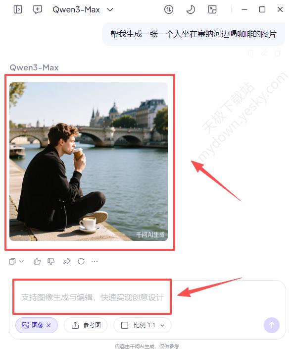 3、千问会快速出图,生成符合您指定要求的图片,如果还想修改图片,可以继续和它对话,说出你的要求。