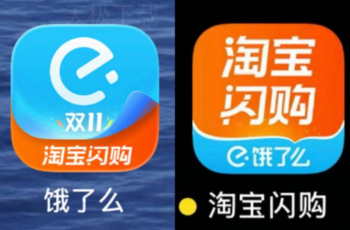 ●图标:从【蓝色】变为【橙色】主调,底部保留【蓝色饿了么】小字。