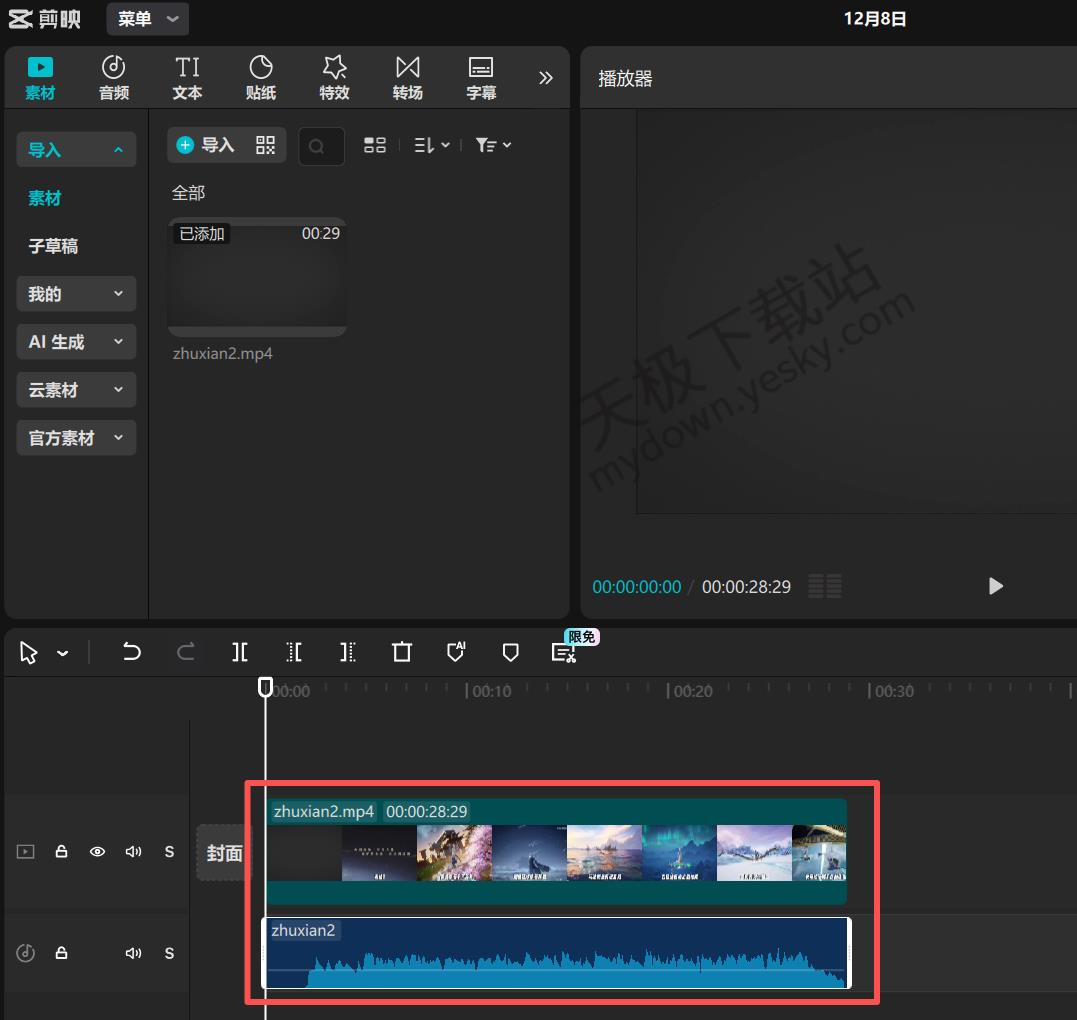 4.如图,在下方的轨道处会分离出视频的音频轨道。