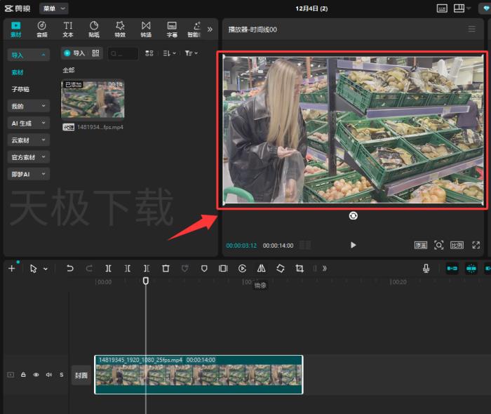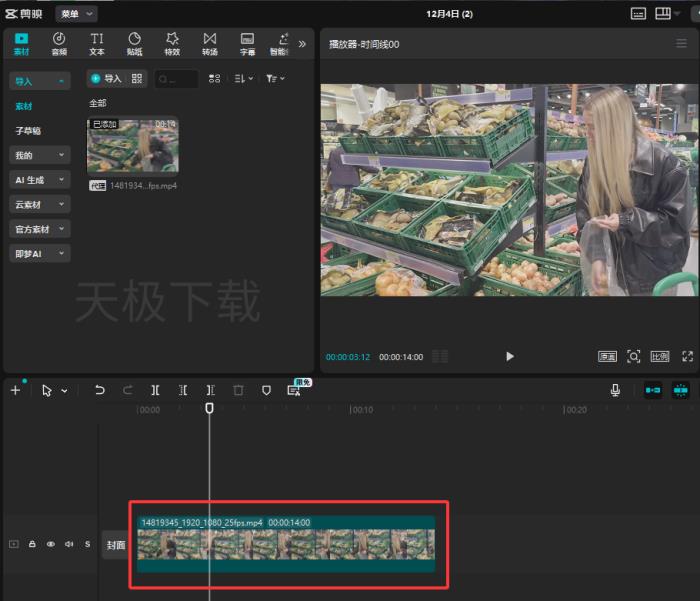 1.打开剪映,将素材拖到时间轴上。