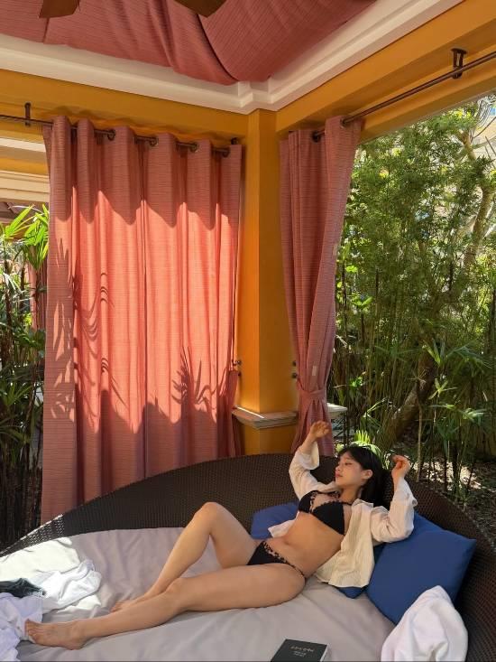 韩国宝藏网红auddk澳门行,比基尼造型慵懒躺倒展示好身材
