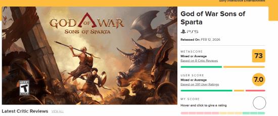 战神新作M站媒体评分公布,系列评分最低
