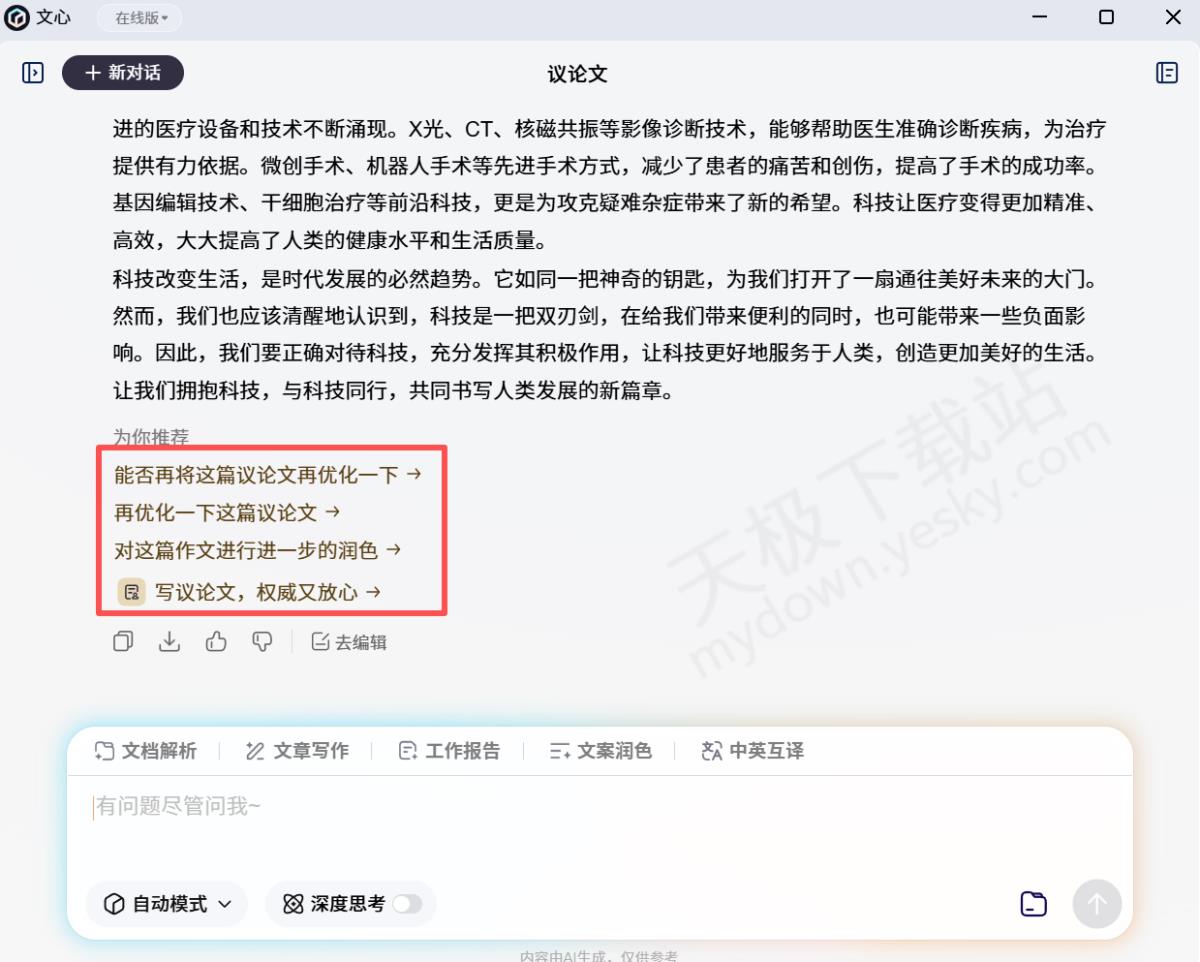 经实测,文心AI写作工具可完全免费使用,且无使用次数限制,按上述教程操作即可正常使用。