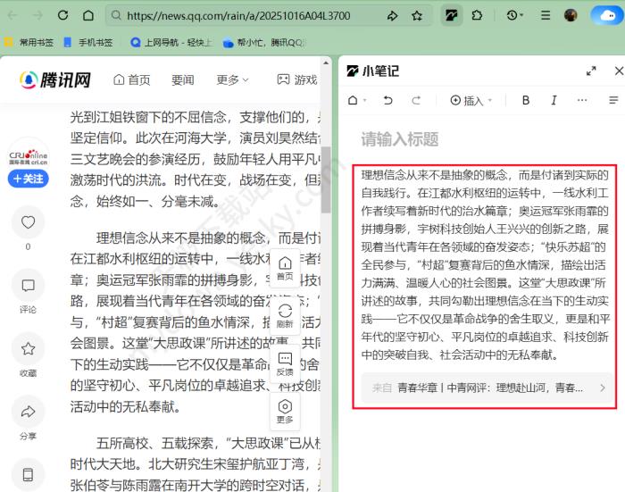 QQ浏览器边浏览网页边记笔记的方法