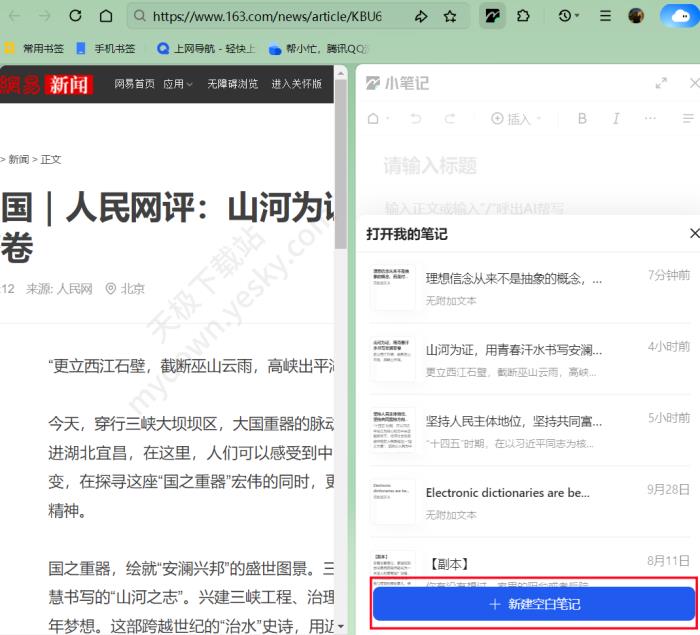 3、可以在新建的空白笔记中,边浏览网页边进行记录。