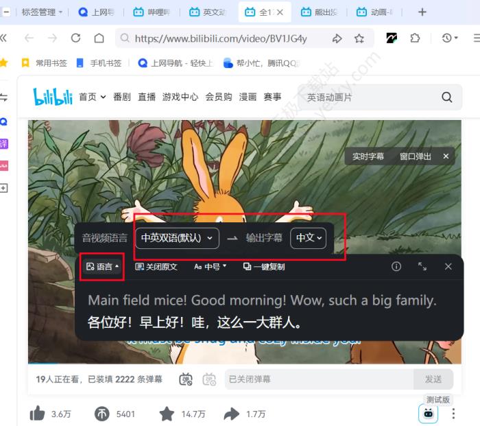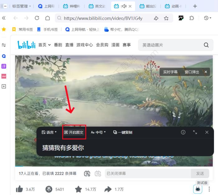 2、进入任意视频网站,在视频播放时将鼠标悬停在视频窗口,出现【实时字幕】按钮时直接点击,即可进入实时字幕功能。