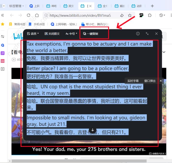 6、用户可点击【放大】按钮→【一键复制】复制所有字幕。