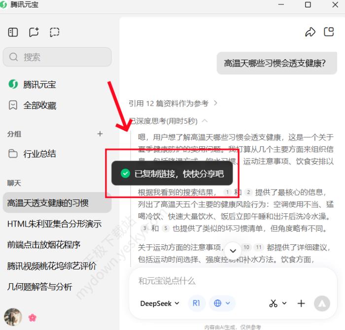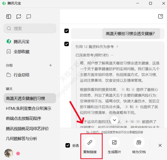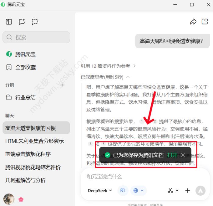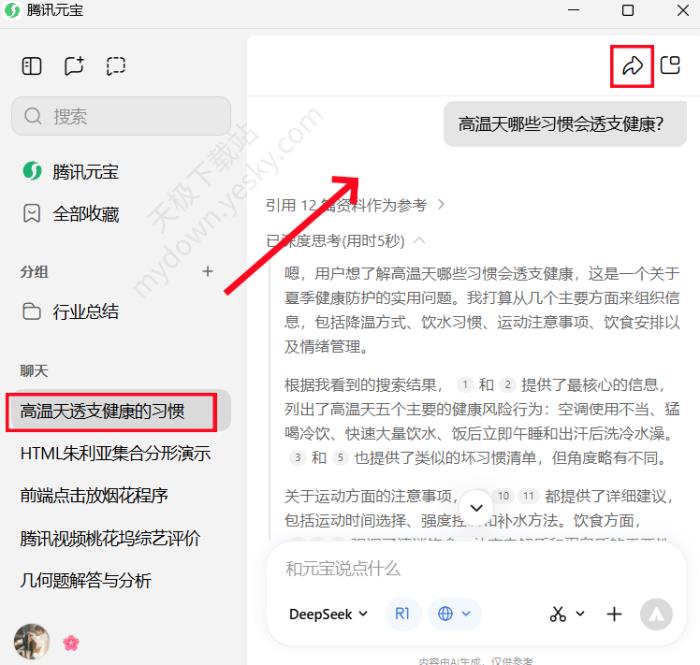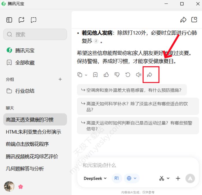 腾讯元宝内容导出文档的方法,几种导出方式解析