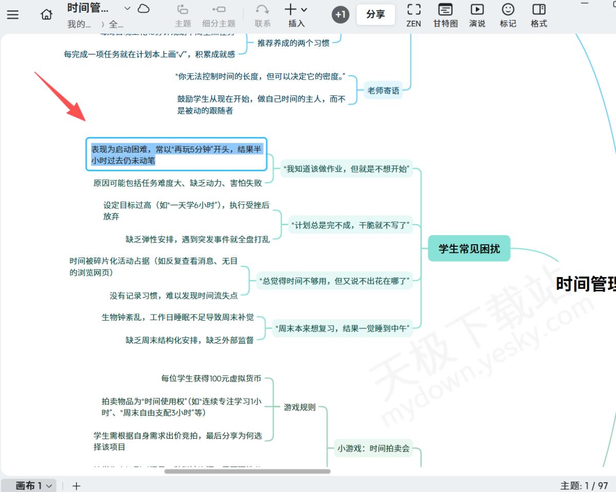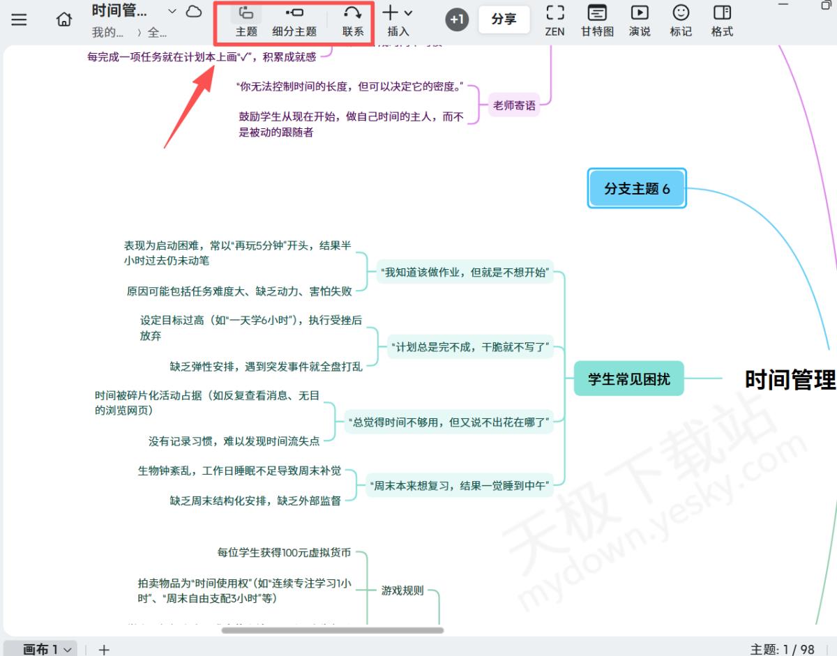 4.还可以用上方主题工具,为思维导图添加新的分支。