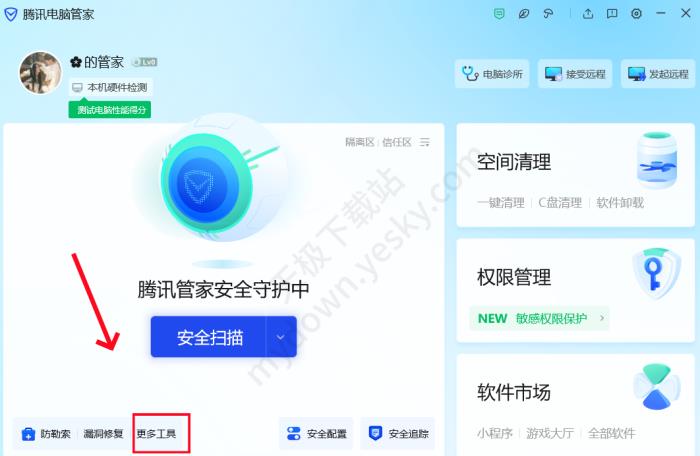 1、打开腾讯电脑管家,点击左下角【更多工具】。