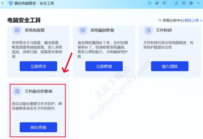 2、在更多工具界面找到【文档备份防勒索】点击【前往查看】。